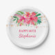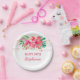 These 60th birthday party plates feature a tropical flowers design with string lights. Personalise them with your text. Please visit the collection page in our store to see the full range of matching products available in this design..