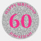 60th Birthday with Name Silver Glitter Classic Round Sticker