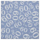 This design is a cool blue and white random number pattern with the milestone number 60 repeated in varied sizes and angles in an all-over print.