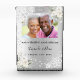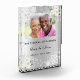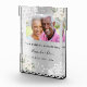 Celebrating a 60th diamond wedding anniversary. A faux silver looking background, decorated with white florals, lace and faux diamonds. Personalise and add a photo of the happy couple. The text: The names is written with a black modern hand lettered style script. Tempates for the names and a date.