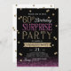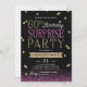 This chic and stylish 60th Birthday Surprise Party invitation features an elegant faux rose gold and pink glitter confetti theme with modern typography.