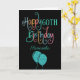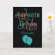 Wish a happy 60th in modern and Colorful style! Happy Birthday is set in an artsy text in shades of teal, pink, blue, coral and orange, on a classic black background. The age and your recipient’s name are in a cordinating typeface. You can change the greeting inside to your own words and easily personalise the age and name on the front. Faux sparkle teal balloons add the perfect finishing touch on the front!