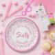This over-the-hill design has a pink and white random number pattern with the pink milestone number 60 'repeated in varied sizes and angles for an all-over print. There is a white circle in the centre for your text and pink and white rings around the rim.