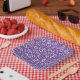 This cool design is a purple and white random number pattern with milestone number 60 repeated in varied sizes and angles in an all-over print.