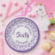 60th Party Random Number Pattern Purple/White Paper Plate