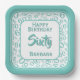 This over-the-hill design has a teal and white random number pattern with milestone number 60 repeated in varied sizes and angles.  There is a white rounded square in the centre for your text and teal and white around the rim.