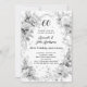 A white background. Decorated with florals and a faux silver ribbon and faux diamonds. Personalise and add your names and details.