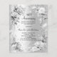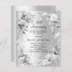 A faux silver looking background. Decorated with florals and a faux silver ribbon and faux diamonds. Personalise and add a name and details.