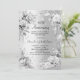 A faux silver looking background. Decorated with florals and a faux silver ribbon and faux diamonds. Personalise and add a name and details.