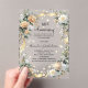 A clear, transparent background. Decorated with white and yellow florals and a golden ribbon and faux diamonds. Personalise and add a name and details.