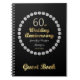60th Wedding Anniversary Party celebrating 60 years together, Guest Book Chic Elegant Gold Typography Black Background Diamonds Circle Diamond Wedding Spiral Notebook