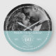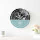 Simple outline heart stone effect line art graphics blue-grey green and white add your own photo 60th Diamond Wedding Anniversary clock. Customise with your own 55th-anniversary couple's name, year of their wedding, and year of anniversary, plus add a landscape photograph of your anniversary couple. The fifty-fifth wedding anniversary is associated with the precious gemstone emerald and the heart symbolises love. Graphics and design by Sarah Trett for www.mylittleeden.com and www.mylittleedenweddings.com on Zazzle.