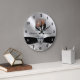 A Digitalbcon Images Design featuring a black satin and platinum silver colour and flourish design theme with a variety of custom images, shapes, patterns, styles and fonts in this one-of-a-kind "Diamond Wedding Anniversary Design" Photo Wall Clock. With this attractive and elegant design choice you'll have all your decorations, gift ideas and party favours all coordinated together for the perfect Anniversary celebration.