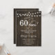 60th Wedding Anniversary Celebration Invitation. Rustic design with dark brown wood pattern and fairy string lights. Features script elegant font. Cheers to 60 years! Can be personalised into any year of marriage! Message me if you need further customisation. Printed Zazzle invitations or instant download digital template. Perfect for a stylish diamond 60 years of marriage celebration.