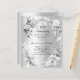 A faux silver looking background. Decorated with florals and a faux silver ribbon, bows and faux diamonds. Personalise and add a name and details.