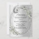 A faux silver looking background. Decorated with greenery, an oval frame and faux diamonds. Personalise and add a photo, names and details.