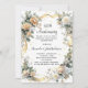 A white background. Decorated with white and yellow florals and a golden ribbon and faux diamonds. Personalise and add a name and details.