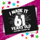 This funny 61st birthday design makes a great sarcastic humour joke or novelty gag gift for a 61 year old birthday theme or surprise 61st birthday party! Features 'I Made it to 61 Years Old...Nothing Scares Me' funny 61st birthday meme that will get lots of laughs from family, friends, party guests & the birthday guy or girl too!