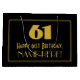 This Roaring '20s look inspired vintage appearance birthday-themed gift bag design features a large art deco look inspired number "61", the message "Happy 61st Birthday,", an editable name, and a border pattern consisting of thin lines. It has a black-coloured background. A gift bag like this might be used when wrapping presents being given to somebody in celebration of their sixty first birthday. [~Z0000501]