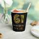 This vintage style and 1920s/1930s style inspired birthday themed paper cup design features a large art deco inspired appearance number “61”, along with the birthday greeting message “Happy 61st Birthday,” and an editable name. It also has a black-coloured background. Paper cups like this might be used when celebrating somebody’s 61st birthday. [~Z0000546]