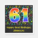 This fun, vibrant, and colourful birthday paper napkin design features a large number "61" having a rainbow spectrum gradient inspired pattern. It also features the message "Happy 61st Birthday,", and a customisable name. Part of the background features a colourful music notes and symbols pattern. Birthday themed paper napkins like this might be used when celebrating a musician’s, a singer’s, a composer’s, or somebody else’s 61st birthday. [~Z0000421]
