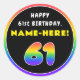 61st Birthday: Colourful Rainbow # 61, Custom Name Classic Round Sticker
