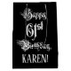 This lavish and fancy birthday themed gift bag design features the message “Happy 61st Birthday,” in formal script style text, on a black coloured background. It also features an editable recipient name. A gift bag like this might be a respectable way of wrapping a birthday present or gift being given to somebody who is celebrating their sixty first birthday. [~Z0000557]