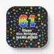 61st Birthday: Fun Stars Pattern and Rainbow “61” Paper Plate