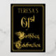 The front of this fancy and opulent foil sixty-first birthday celebration/party invitation design features the message “61st Birthday Celebration” in elegant script-style text. It also has an editable name. The background of the front is coloured black by default (although it can be customised to a different colour). The back features personalised details about the event, such as the date, time, location, and any other information that may be relevant. Ornate, elegant, editable invitations like these might be used to invite guests to a birthday celebration being held to honour somebody’s 61st birthday. [~Z0000589]