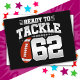 This football birthday design is perfect for a 62nd birthday football theme birthday party to celebrate turning 62 years old! Features 'Ready To Tackle 62' 62nd birthday football quote with football graphic. Perfect for anyone who loves football turning 62 years old!
