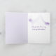 Purple ribbon and flowers on a white notecard and white wood for a 62nd wedding anniversary.