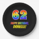 62nd Birthday: Bold, Fun, Simple, Rainbow 62 Paper Plate