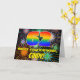 The front of this bold and cheerful birthday-themed greeting card design features a large number “62” having a multicolored rainbow spectrum inspired gradient pattern. It also features the message “HAPPY 62nd BIRTHDAY,”, and a personalised recipient name. The background of the front has a vibrant, colourful pattern inspired by bursting celebratory fireworks. The inside has a customisable birthday greeting message, or could perhaps be cleared and left blank if a message is to be written by hand instead. An eye-catching, customised birthday greeting card like this might be used to acknowledge somebody’s sixty-second birthday. [~Z0000619]