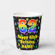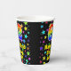 This fun and cheerful birthday themed paper cup design features a large number “62” with a rainbow spectrum gradient inspired pattern, along with the message “Happy 62nd Birthday,”, and a personalised name. The background features a multicolored star field inspired pattern. Vibrant, colourful paper cups like this might be fun to use at a birthday party/celebration being held to honour somebody’s sixty second birthday. [~Z0000540]