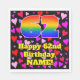 This joyful and happy birthday paper napkin design features a large number “62” with a rainbow spectrum gradient inspired pattern, along with the message “Happy 62nd Birthday,”, and a personalised name. The background features a pattern of pink, red, and purple heart shapes. Upbeat, joyful paper napkins like this might be fun to use at a birthday celebration being held to honour somebody’s sixty second birthday. [~Z0000550]
