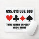 Showcase your wry bridge / duplicate bridge side with this moupsead featuring the four card suits along with the following saying: "635, 013, 559, 600 Total Number Of Possible Bridge Hands". Make others do a double-take at the number of possible combinations amongst 13 cards there truly are once a hand has been dealt! A bridge player will definitely not live to play them all!