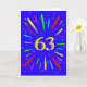 An explosive 63rd birthday card! What a wonderful way to send birthday greetings. The number 63 in bright yellow with an explosion of bright colours and stars.