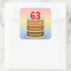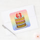 This joyful and upbeat birthday square sticker design features a cartoon-style depiction of a three-tier birthday cake having number-shaped candles on top showing the age “63“, along with the message “HAPPY 63RD BIRTHDAY,”, and a custom recipient name. The background has a multicolored pastel rainbow spectrum inspired gradient pattern. Fun birthday themed stickers like these might be distributed or used at a party celebrating somebody’s sixty third birthday, or perhaps used when wrapping presents/gifts or preparing invitations for such an event. [~Z0000624]