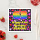 This fun and happy birthday paper napkin design features a large number “63” with a rainbow spectrum gradient inspired pattern, along with the message “Happy 63rd Birthday,”, and a personalised name. The background features a pattern of purple, pink, and red heart shapes of various sizes. Loving, happy paper napkins like this might be fun to have at a birthday party/celebration being held to honour somebody’s 63rd birthday. [~Z0000550]