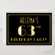 The front of this Roaring Twenties inspired sixty-third birthday party foil invitation features an editable name, a large art deco look inspired number “63rd”, the message “BIRTHDAY PARTY”, and a border pattern consisting of lines. There is a black-coloured background on the front by default, but it can be customised to a different colour if desired. The back features personalised details about the event, such as the date, time, venue, and any other important information. Luxurious, elegant, customisable invitations like these might be used to invite guests to a birthday gathering being held to honour somebody’s 63rd birthday. [~Z0000591]