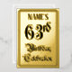 The front of this fancy and luxurious sixty-third birthday celebration/party foil announcement card design features the message “63rd Birthday Celebration” in elaborate script-style text. It also has a customisable name. The back features personalised details about the event, such as the date, time, venue/place, and any other useful information. Ornate, elaborate, customised invitations like these might be used to invite guests to a birthday celebration being held in celebration of somebody’s sixty-third birthday. [~Z0000596]