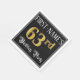 This luxurious and fancy birthday themed paper napkin design features a custom name and the message “63rd Birthday Party”. The large number “63rd” has an imitation/faux gold-inspired coloring pattern, the words “Birthday Party” are in ornate script-style text, and the background is colored black by default (although it can be customized). Elegant, ornate paper napkins like this might be useful at a birthday party being held in celebration of somebody’s sixty third birthday. [~Z0000565]