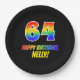 64th Birthday: Bold, Fun, Simple, Rainbow 64 Paper Plate