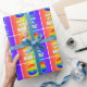 This exciting and joyful birthday-themed wrapping paper design features a large number “64” having a colourful rainbow spectrum inspired gradient pattern. It also features the message “HAPPY 64th BIRTHDAY,”, and an editable recipient name. The background also features a cheerful multicolored rainbow spectrum inspired gradient pattern. Personalised birthday themed wrapping paper like this might be used when giving a gift or present in celebration of somebody’s 64th birthday. [~Z0000572]