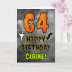 The front of this scary and spooky Halloween themed birthday greeting card design features a large number “64”. It also features the message “HAPPY BIRTHDAY,”, and a customisable name. There are also depictions of a ghost and a bat on the front. The inside features an editable birthday greeting message, or could perhaps be cleared and left blank if a message is to be written by hand instead. A personalised birthday card like this might be a fun way to send birthday wishes to somebody who is celebrating their sixty fourth birthday and who was also born on Halloween (October 31st). [~Z0000547]