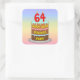 64th Birthday: Fun Cake and Candles + Custom Name Square Sticker