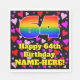 This colourful and happy birthday paper napkin design features a large number “64” having a rainbow spectrum gradient inspired pattern. It also features the message “Happy 64th Birthday,”, and a custom name. The background features a pattern of red, purple, and pink heart shapes of various sizes. Joyful, friendly paper napkins like this might be fun to use at a birthday party/celebration being held to honour somebody’s sixty fourth birthday. [~Z0000550]