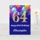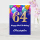 64th Birthday Navy Blue and Gold Colourful Balloon Card