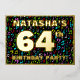 The front of this upbeat and exciting sixty-fourth birthday party foil invitation card design features a personalised name, a large number “64th”, the message “BIRTHDAY PARTY!”, and a border. The background of the front has a vibrant, multicolored pattern of musical symbols and notes. The back features personalised details about the event, such as the date, time, location/venue, and any other important information. Customisable invitations like these might be a fun way to invite attendees to a birthday party being held to celebrate somebody’s 64th birthday. These might be more meaningful for a music-themed birthday party. [~Z0000601]