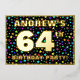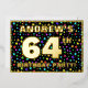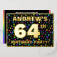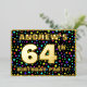 The front of this upbeat sixty-fourth birthday celebration foil invitation card design features an editable name, a large number “64th”, the message “BIRTHDAY PARTY!”, and a border. The background of the front features an eye-catching, colourful stars pattern. The back features personalised details about the event, such as the date, time, place, and any other useful information. Customised invitations like these might be a fun way to invite attendees to a birthday party/gathering being held to honour somebody’s 64th birthday. [~Z0000600]